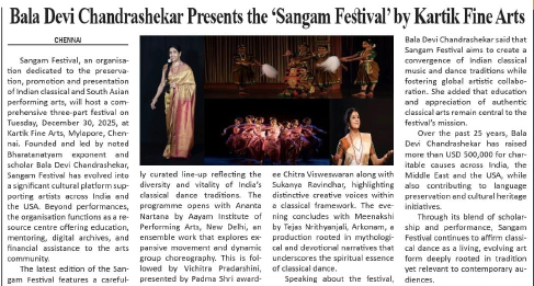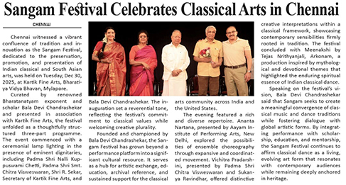 | 24th December 2025 - Business Minutes - Bala Devi Chandrashekar Presents the ‘Sangam Festival’ by Kartik Fine Arts |