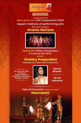 | 30th December 2025 – 10:00 am - Sangam Festival & Kartik Fine Arts - Bhavan, Mylapore, Chennai. |